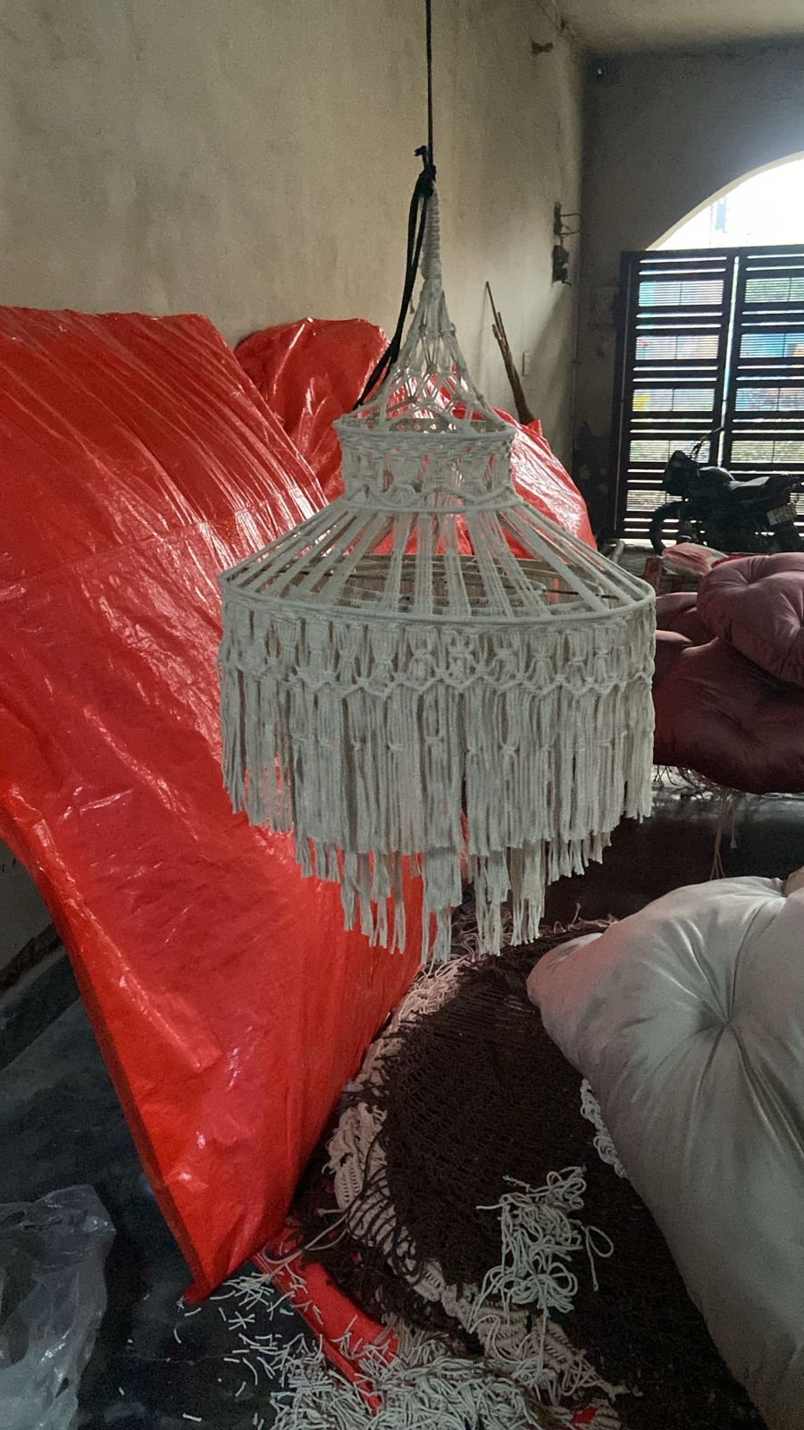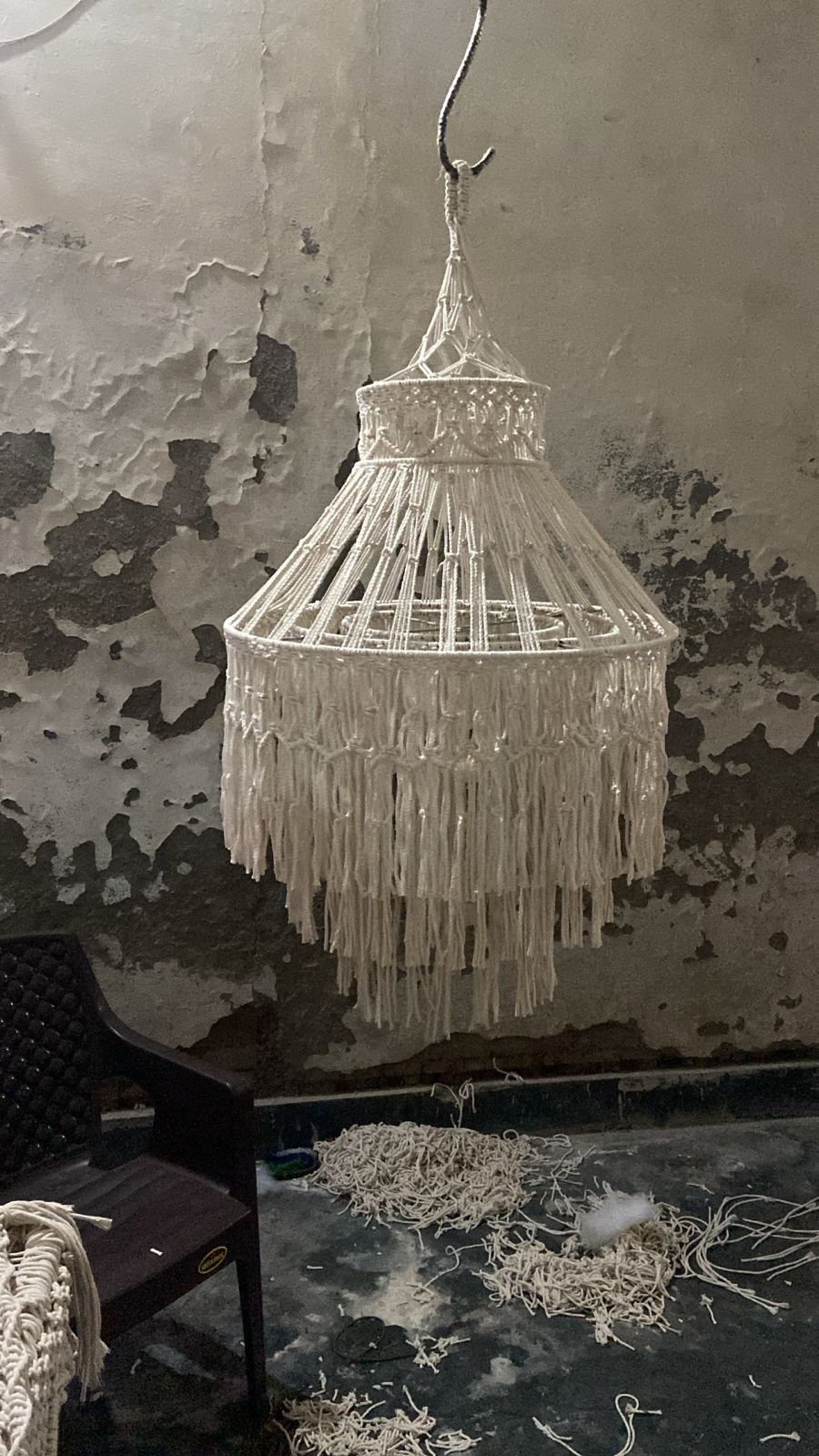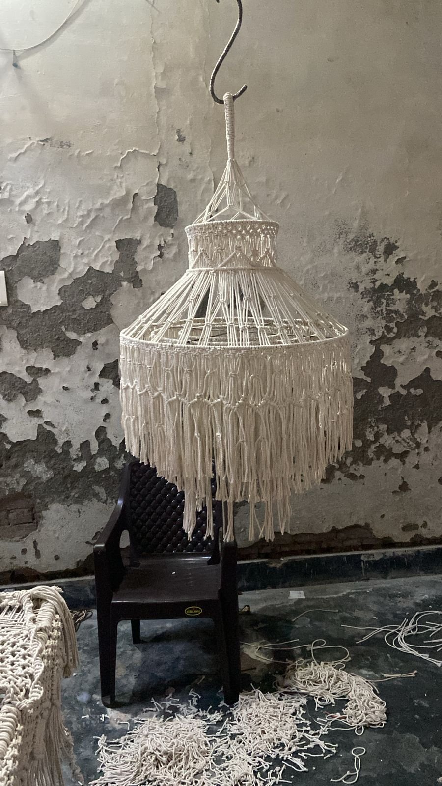 Add a warm, handcrafted charm to your home with our beautifully woven 24-inch macramé chandelier. Perfect for living rooms, dining areas, entryways or cozy corners — it brings a soft, artistic glow wherever it's placed. 🧵 Handcrafted with premium cotton 📏 24-inch diameter — bold & graceful 🌿 Ideal for modern, boho & minimal interiors 💡 Pair with warm or cool lighting 🏡 Made with care by ProKnots