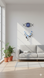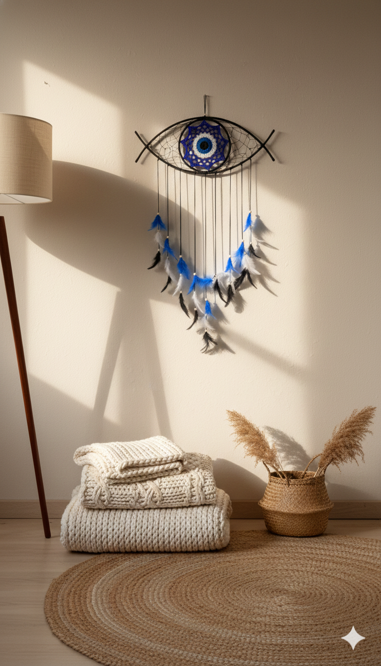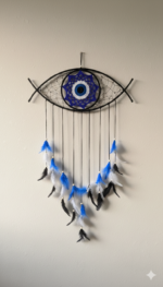 Bring protection and style together with the Blue Sentinel Evil Eye Dreamcatcher, beautifully handcrafted to add a calming yet powerful presence to your décor. Featuring the symbolic evil eye design in soothing blue tones, this dreamcatcher is perfect for bedrooms, living rooms, entrances, or meditation spaces. A meaningful décor accent that blends tradition with modern boho aesthetics.