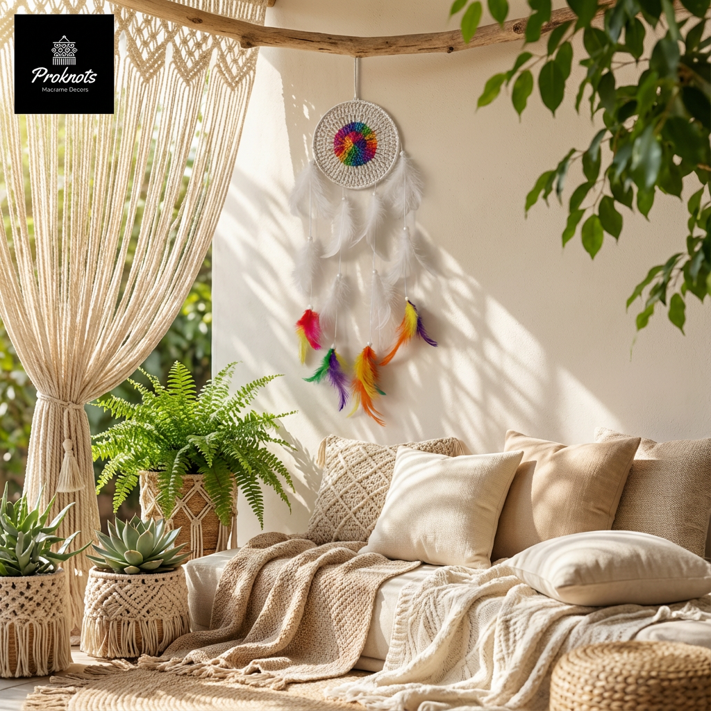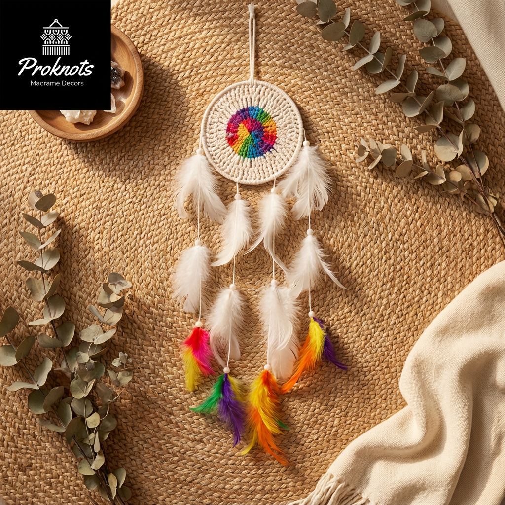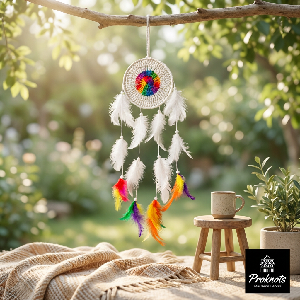 Brighten your space with the Rainbow Crochet Dreamcatcher, beautifully handcrafted with vibrant colors and detailed crochet work. Perfect for bedrooms, kids’ rooms, nurseries, and boho-inspired interiors, this dreamcatcher adds warmth, positivity, and a cheerful handmade touch to any wall.